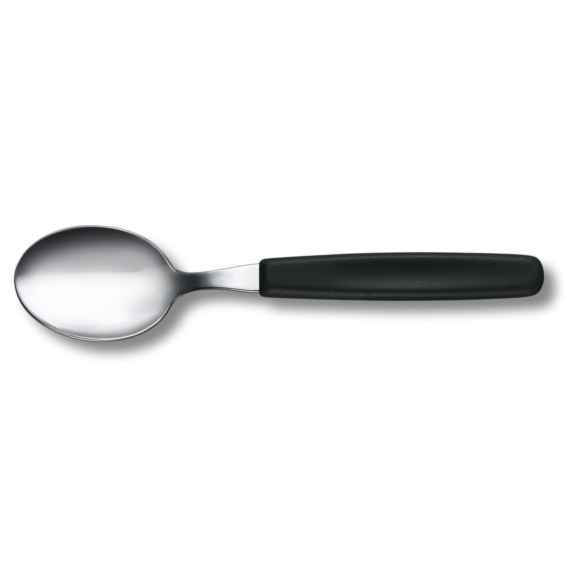 Trudno wyobrazić sobie nakryty stół bez łyżki z serii Swiss Classic. Ergonomiczny uchwyt wykonany z polipropylenu w kolorze czarnym jest lekki i dobrze leży w dłoni.