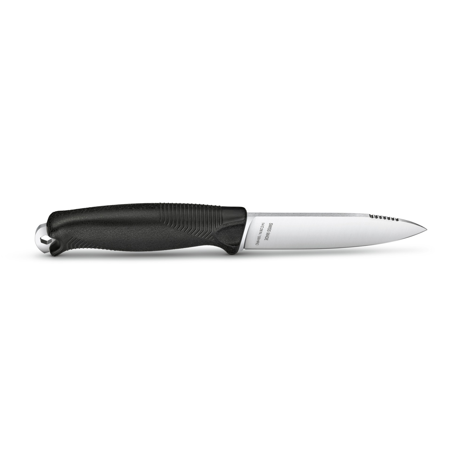 Noże ze stałym ostrzem idealnie sprawdzą się podczas wędrówek, biwakowania, aktywności na świeżym powietrzu i rzeźbienia a do tego nie zgubią się podczas przygotowywania posiłków. Posiadają ostrze typu full tang, są naturalnie elastyczne i zachowują doskonale ostrą krawędź. Ostrze typu drop point zapewnia precyzyjne cięcia, równocześnie zachowując wytrzymałość i umożliwiając pracę przy średniej sile nacisku. Konstrukcja Powerzone (profilowane linie oznaczają strefy, na które można wywierać największą siłę nacisku), mikrostruktura i ergonomiczna rękojeść zapewniają wygodny i pewny uchwyt w każdych warunkach pogodowych. Rękojeść została wykonana z niezwykle wytrzymałego polimeru (TPE). Zestaw zawiera pochwę umożliwiającą bezpieczne przechowywanie noża. Pochwa jest symetryczna, dzięki czemu ostrze można włożyć w obu kierunkach a więc nadaje się zarówno dla prawo- jak i leworęcznych użytkowników. Otwory w pochwie pozwalają ostrzu odpowiednio wyschnąć po użyciu. Przy odpowiednim ustawieniu pochwa może posłużyć także jako przystawka do wiertarki. Oprócz tego może być również używana jako skuteczna dmuchawa do ognia.