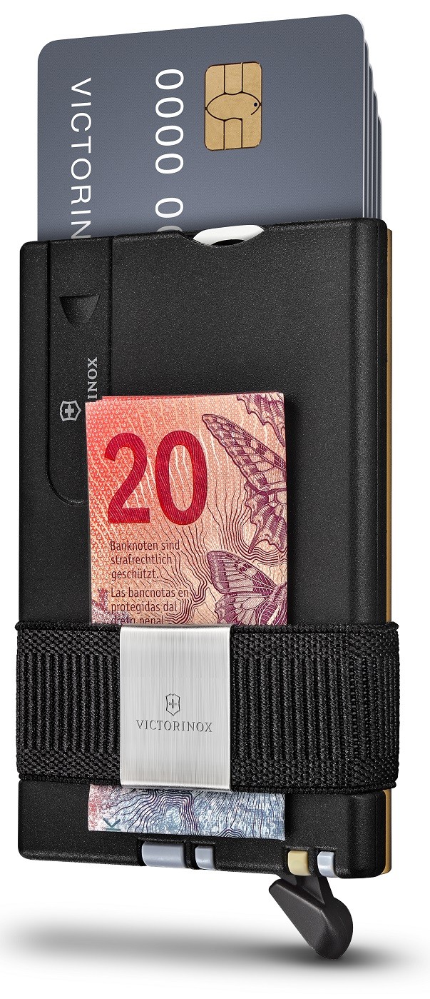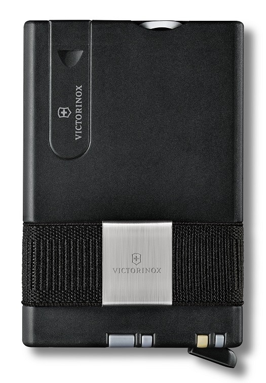 Etui ochronne na karty / Opaska na banknoty / Małe ostrze / Nożyczki / Pilniczek do paznokci | Śrubokręt 2,5 mm / Szpilka / Pęseta / Wykałaczka / Długopis z wkładem napełnianym pod ciśnieniem / Pilniczek do paznokci